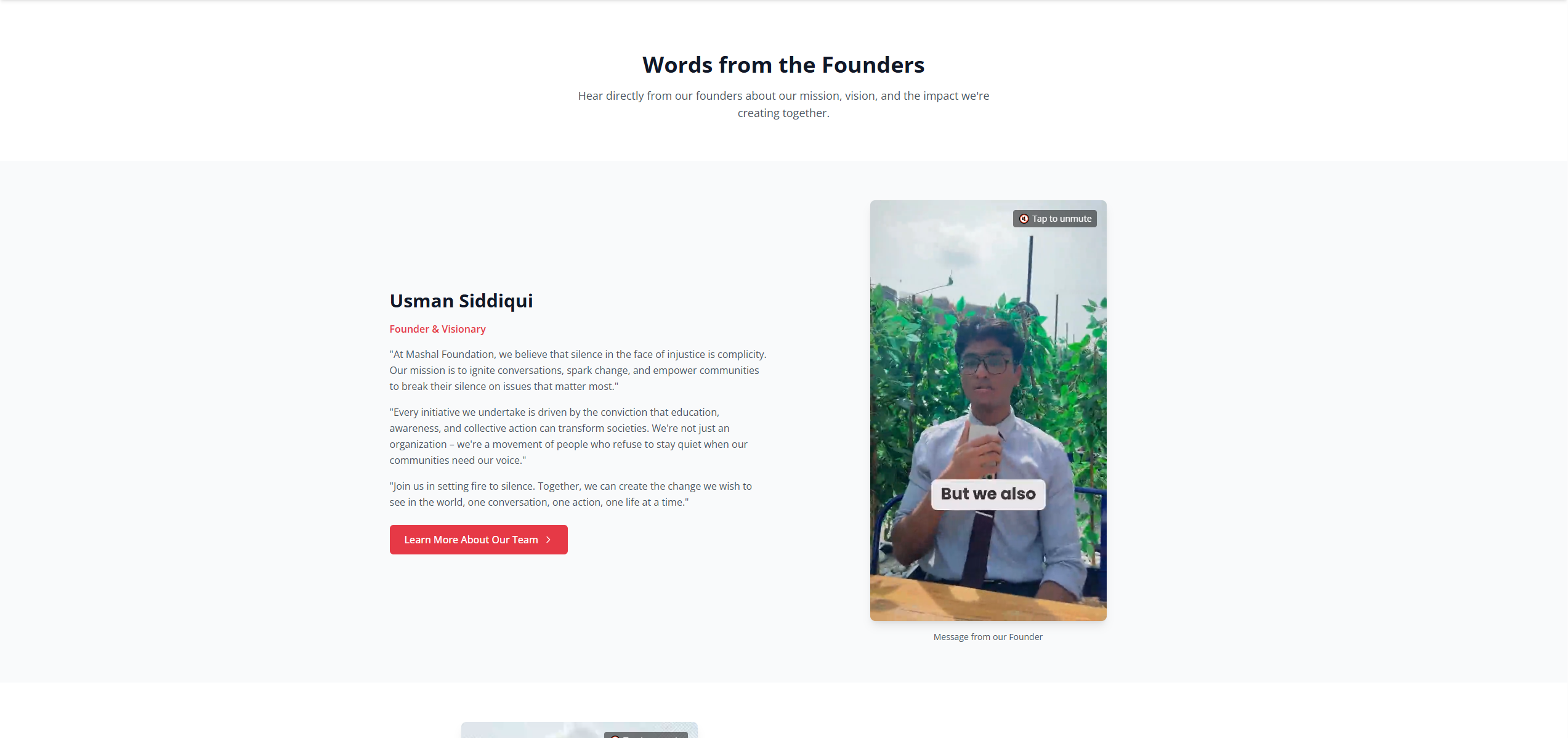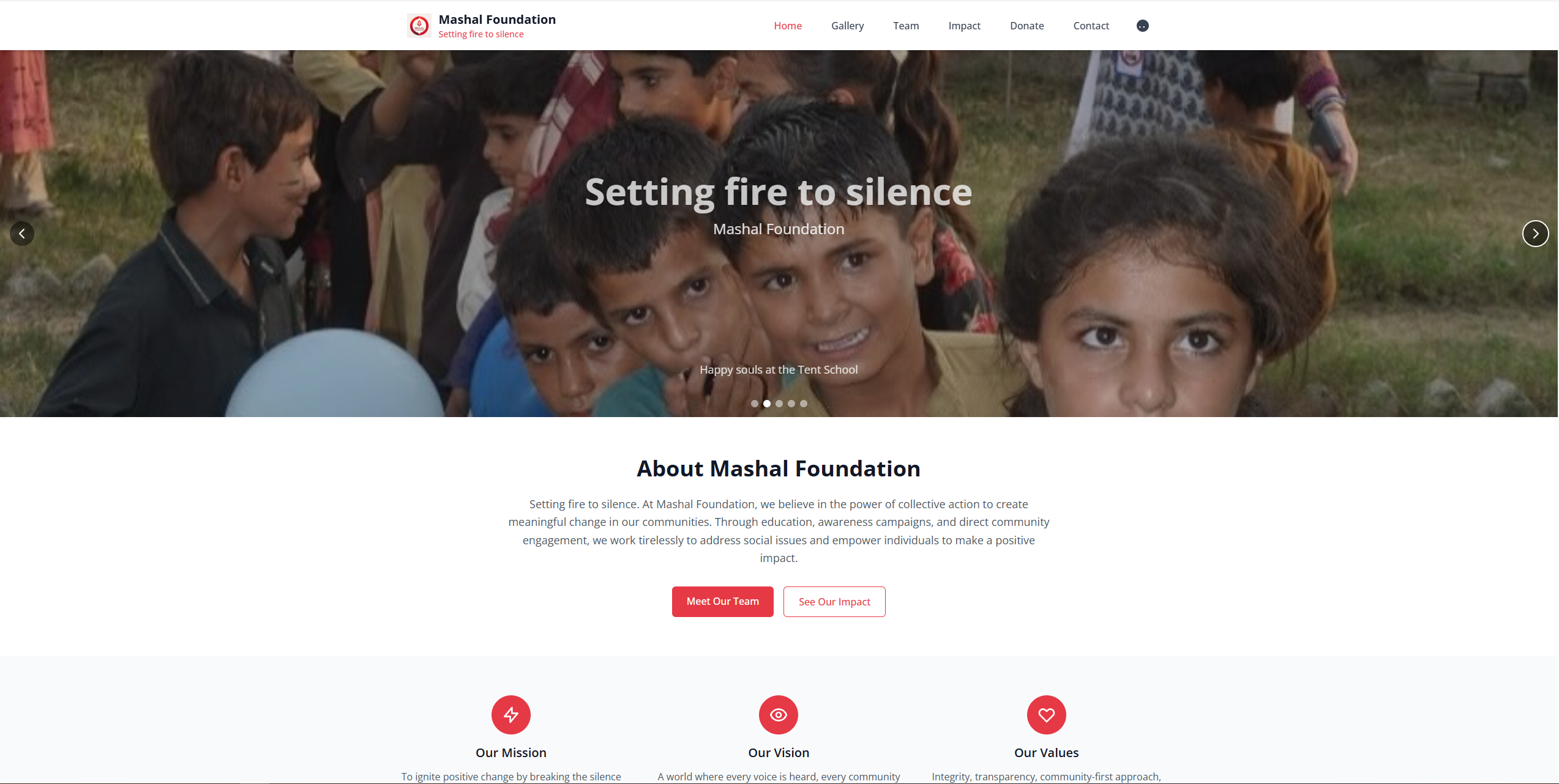 A digital home for Mashal, a Pakistani NGO empowering underprivileged children with education, nutrition, and healthcare. The site balances impact storytelling with clear donation and volunteer pathways while remaining performant on low-bandwidth connections.