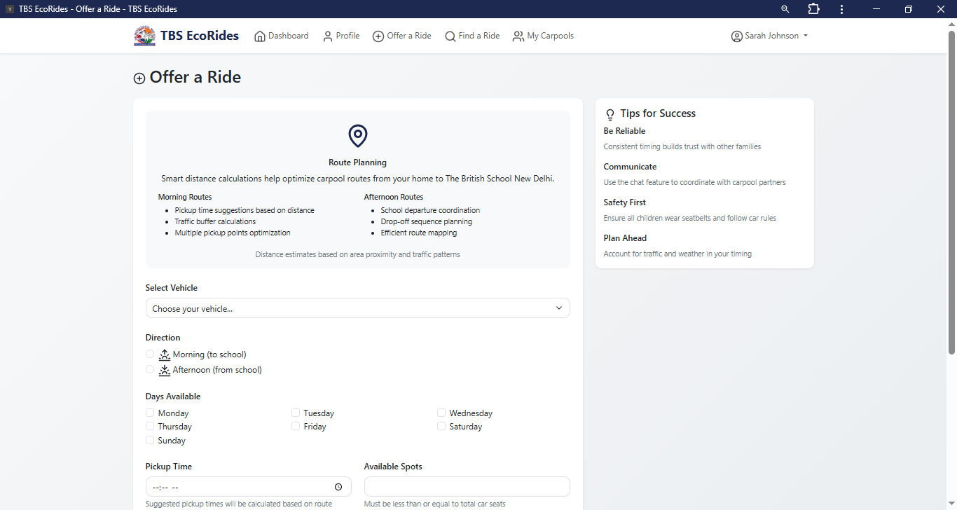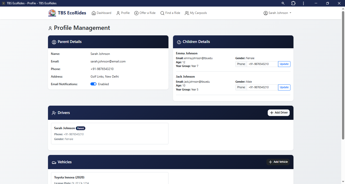 A full-stack carpooling web application developed to reduce excessive energy use and pollution from daily school commutes in Delhi.